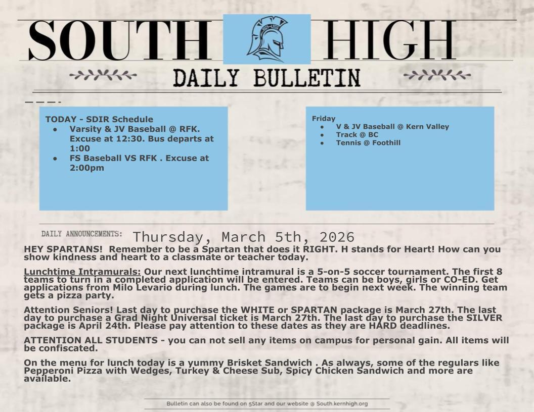 Spartan News » March 5th